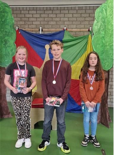 De kinderen van de groepen 7 en 8 hebben gestemd. Er zijn 2 finalisten die op vrijdagmiddag voorgelezen hebben in de speelzaal voor de kinderen van de groepen 5 t/m 8.